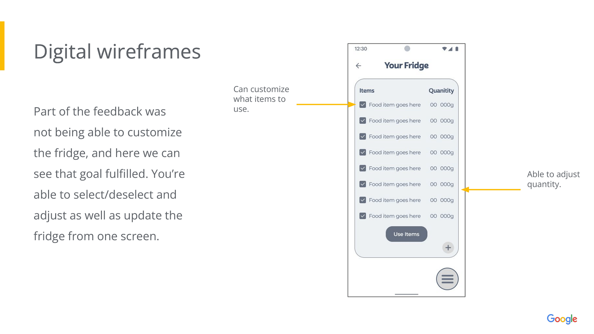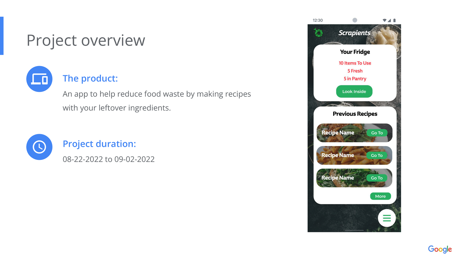 Case study for a website & app design concept to use leftover fridge items for generated recipes.